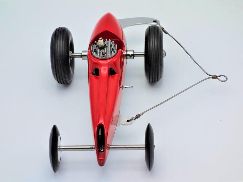 The car shown in the photos was owned by John Diekmann of Algona, IA. John Diekmann and his brother Bob were active members of the Algona Model Race Car Association. They raced their cars on a 1/60th mile tether car track located on the Kossuth County Fairgrounds in Algona.