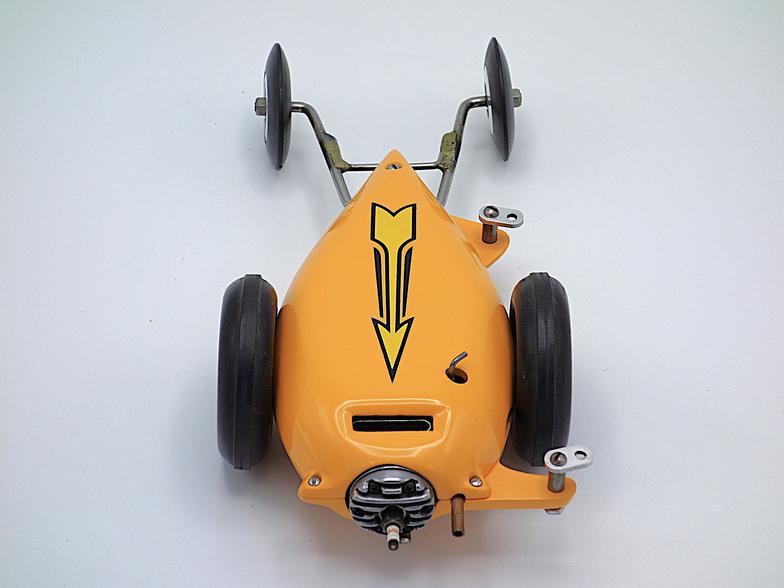 Kansas City was part of the post-World War II boom in tether car racing, and in response to the growing popularity of the hobby, Pop Schreiber sold a teardrop-shaped .19-size mite car kit which was designed by members of the Kansas City mite car club. The car was well engineered, inexpensive, easy to build, and the finished car was quite competitive against mite cars of that era.