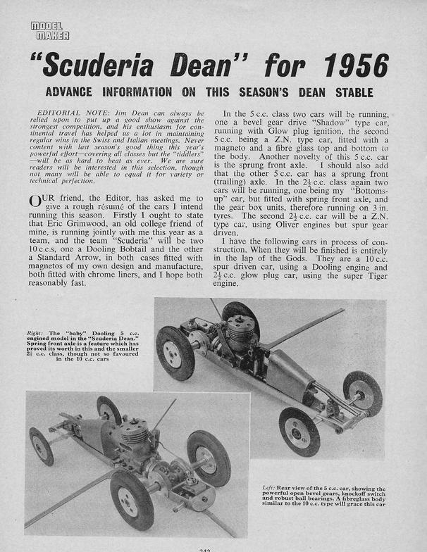 The car was documented in the May 1956 issue of the British hobby magazine "Model Maker". The car has been modified somewhat since the car was originally built by Jim Dean.