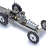 The car is powered by a Hornet .199 model engine with a one-piece machined aluminum gear box. The custom made fuel tank was fabricated from stainless steel, and a nicely-done fuel shut-off was added. The front axle was custom made. The tail skid has a carbide tool tip brazed on the end.