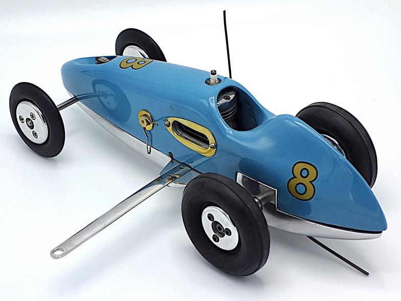 The Rebel, Jr. car shown in the photos was originally built by Bert Kuebler, along with Franny Wolf, for Kuebler's friend, Rolles Wagner of Versailles, IL. Wagner entered the car in the 1960 AMRCA Nationals held in Anderson, IN where he turned a top speed of 106 mph to place 6th in the .29 Mite class.