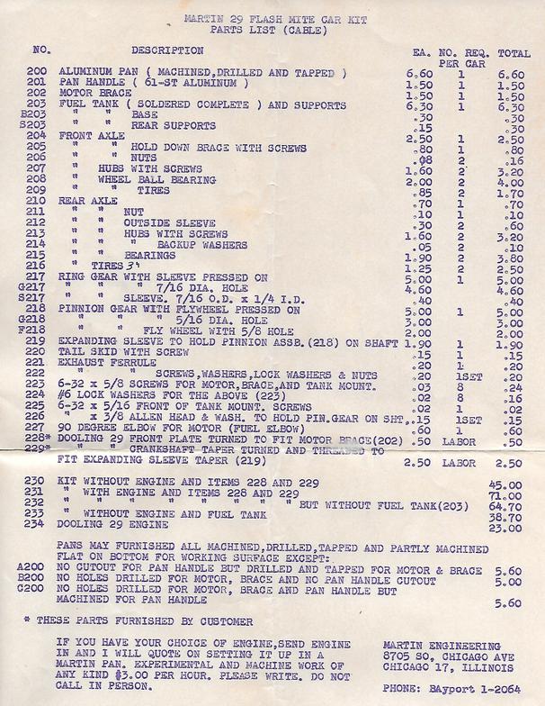 Following the success of his .19-size Martin Flash, Tony Martin introduced a larger .29-size version which he called the Martin 29 Flash. The .29-size car was essentially a scaled-up version of the earlier .19-size car and was designed to be powered with either a McCoy 29 or a Dooling 29 model engine. Like its smaller brother, the Martin 29 Flash was sold as a kit which included almost all of the parts needed to complete the car. However, unlike the .19-size car, the Martin 29 Flash kit did not include a body.
