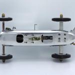 The car was found without a body, so David Wheeler fabricated a hand-formed sheet aluminum body which was a replica of a .60-size Korn Meteor body and consistent with Barney's sketches which were found in his file.