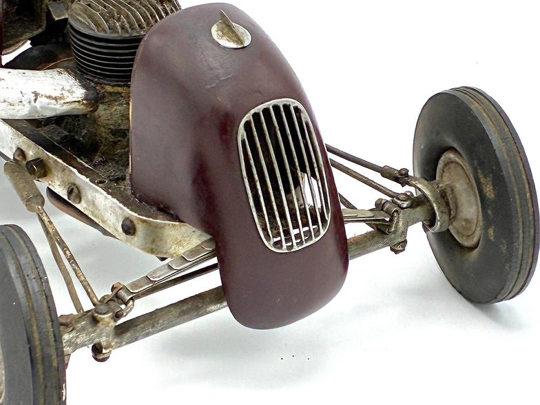 The car was entirely hand-built. The only off-the-shelf items used to finish the car were the pre-war .275 cubic inch Phantom "Bullet" spark ignition engine, the Peerless wheels and tires, and a drive unit from a Matthews Silver Streak. The car features a hand-formed sheet aluminum body, fully sprung front and rear suspensions, and fully functional steering via the steering wheel and a steering box.