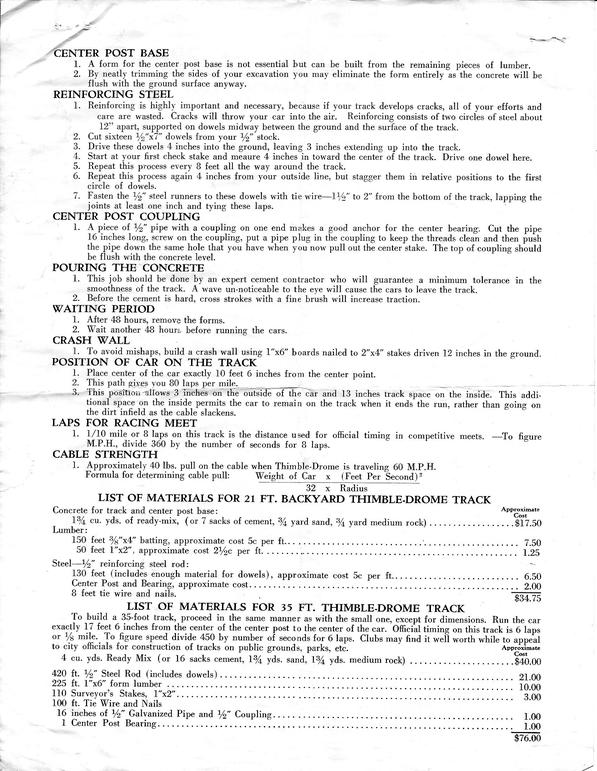 As the popularity of mite car racing took off, hundreds of smaller tether car tracks designed specifically for mite car racing sprang up around the country. Leading that effort was Roy Cox, who developed a set of detailed plans for building a mite car track.