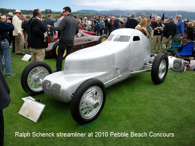 In 2010, the fully restored Ralph Schenck streamliner was exhibited at the Pebble Beach Concours d'Elegance where it created a mild sensation.