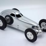 The design of the car was inspired by the iconic Ralph Schenck streamliner, one of the first enclosed cars to compete on the dry lake beds in the Mohave Desert. Ralph Schenck built the chassis of his streamliner and powered it with a four cylinder 183 cubic inch Chevrolet block fitted with a 3-port Oldsmobile head, Ford Model B crankshaft and rods, a Hudson water pump, and a Winfield camshaft. The aluminum body panels were hand-formed by Joaquin Grosso.