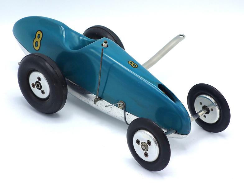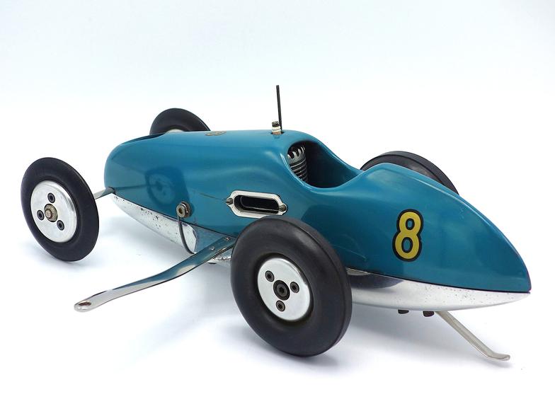 The car shown in the photos is the onlyl original Kuebler Mite, one of one, built by Bert Kuebler of Evansville, IN for his good friend, Rolles Wagner from nearly Versailles, IN. Kuebler designed and built the car, and like all of his work, the car was built to the highest standard of craftsmanship. The car is powered by a McCoy 19 race car engine, and features a cast aluminum pan with a hand-carved wood body, along with one of Kuebler's signature stainless steel fuel tanks and guillotine-style fuel shut-off.