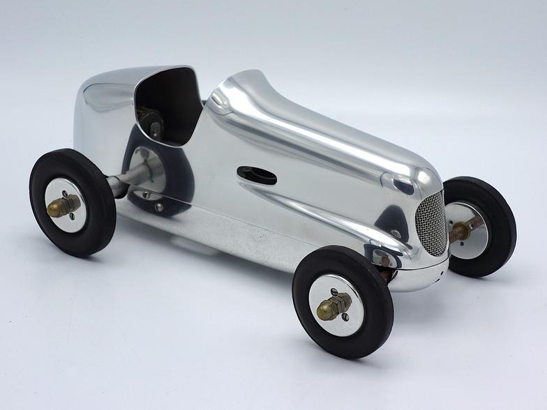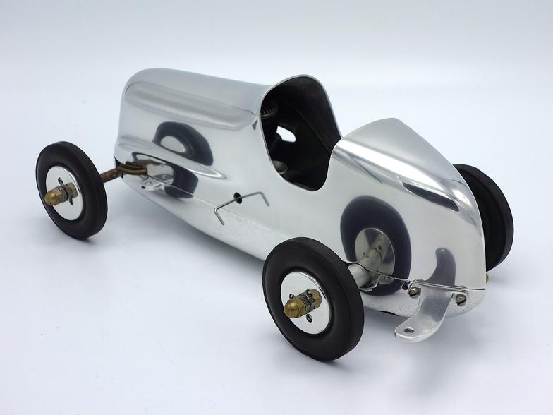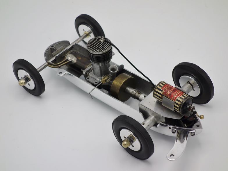 Then, 10 years later, Korn apparently installed the 1938 prototype gearbox in a modified pre-production 1948 Indianapolis series pan, powering the car with a Torpedo .29 ignition model engine.