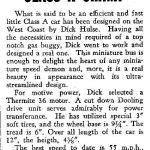 Dick Hulse, both a successful tether car racer and business man, is generally recognized as being responsible for organizing miniature car racing in the United States. He, along with Charles Penn, then publisher of Model Craftsman magazine, is credited with founding the American Miniature Racing Car Association (AMRCA) in 1940. Hulse was also elected as the first president of the AMRCA.