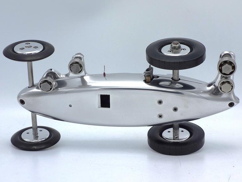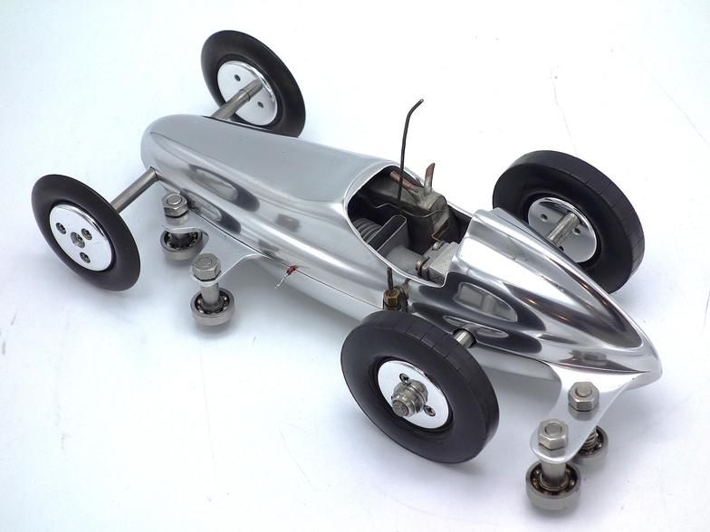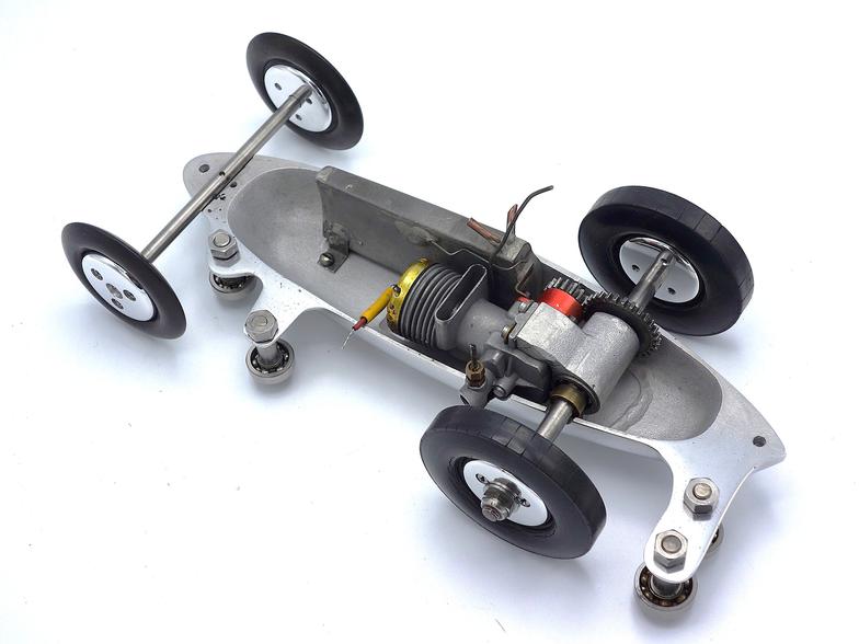 The Babcock Rail-Mite shown in the photos was one of a small number of cars which were actually built by John Babcock and is powered by a rare McCoy .19 "Gold Head" model engine.